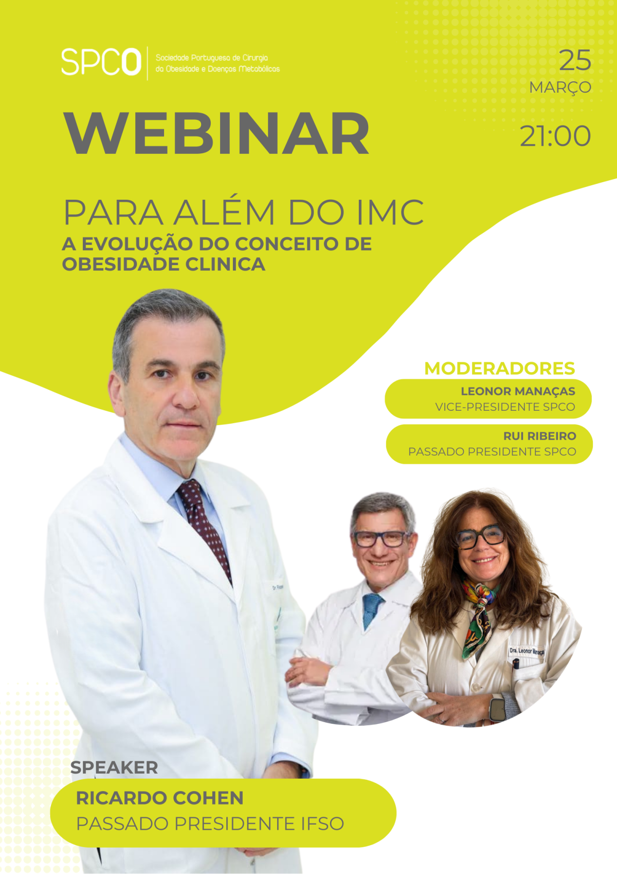 A SPCO apresenta o Webinar: Para Além do IMC: A Evolução do Conceito de Obesidade Clínica, que vai decorrer no dia 25 de março pelas 21H30.